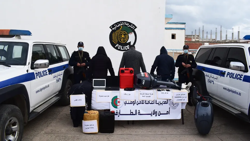 تمكنت مصالح أمن ولاية الطارف من تفكيك شبكة إجرامية تحترف الهجرة غير الشرعية. وأوضح بيان لذات المصالح، أن الشرطة القضائية لولاية الطارف قد أوقفت شبكة إجرامية مختصة في التحضير وتدبير الخروج من التراب الوطني بطريقة غير مشروعة. وأضاف البيان، أنه تم توقيف ثلاثة أشخاص وحجز محركين بحريين، وكمية من مادة البنزين، وجهازي حاسوب محمول وثلاثة هواتف نقالة.