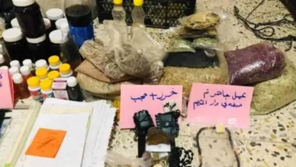 أوقفت عناصر أمن دائرة سيدي الجيلالي التابع لأمن ولاية تلمسان، امرأة مشتبها فيها في قضية ممارسة طقوس السحر والشعوذة. حيث تمت العملية على إثر استغلال معلومات وردت إلى المصلحة مفادها وجود امرأة مشتبها فيها تبلغ من العمر 50 سنة، تمارس طقوس السحر والشعوذة بمسكنها الشخصي. وعليه باشر عناصر الأمن عملية البحث والتحري وبالتنسيق مع العدالة تم تفتيش مسكن المشتبه فيها أسفر عن ضبط بحوزتها حروزا وطلاسم وعقاقير وصورا لضحايا لها علاقة بالسحر والشعوذة. ليتم تحويل المحجوزات والمشتبه فيها إلى مقر الأمن، وإنجاز إجراء قضائي في شأن القضية بخصوص ممارسة السحر والشعوذة، الاستهزاء بمعلوم الدين وإحالتها بموجبه أم...