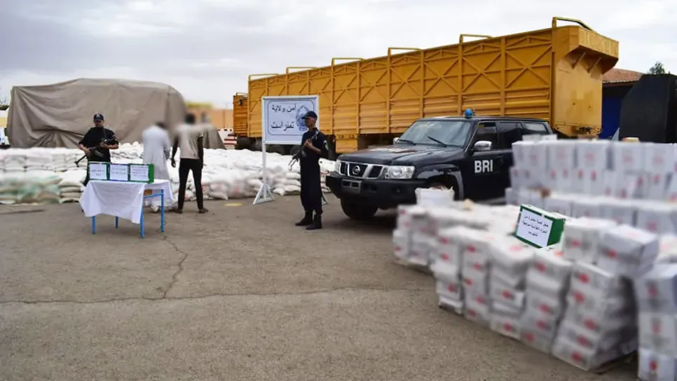 حجزت مصالح أمن ولاية تمنراست كميات كبيرة من المواد الغذائية كانت موجهة للتهريب. وأفاد بيان لذات المصالح، أن فرقة البحث والتدخل BRI بالمصلحة الولائية للشرطة القضائية بأمن ولاية تمنراست تمكنت من توقيف شخصين وضبط شاحنة من الحجم الكبير بها كمية معتبرة من المواد الغذائية موجهة للتهريب. وأضاف البيان، أن العملية أسفرت عن حجز 39 طنا و950 كلغ من مادة الفرينة، 06 أطنان من العجائن الغذائية، 1825 كلغ من مادة السميد و1925 كلغ من مادة السكر.