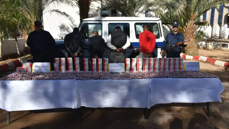 نجح عناصر الضبطية القضائية بالأمن الحضري الاول بولاية تندوف ، في وضع حد لنشاط مروجي المؤثرات العقلية. وحسب ما توفر للخبر من معطيات فإن القضية تعود وقائعها الي معلومات واردة تفيد تورط اربعة اشخاص بترويج المؤثرات العقلية بأحياء تندوف ، ليتم بعد ذلك تأكيد المعطيات و اطلاق ابحاث و تحريات مع الترصد للمشتبه فيهم الذين تم تحديد مكان تواجدهم. و أشارت ذات المعطيات أنه بمجرد تفطن المشتبه لحركة أفراد الشرطة قام احد الموقوفين برمي حقيبة داخل صهريج مائي التي كانت تحتوي على 62 علبة مؤثرات عقلية بمجموع 9225 كبسولة من وع بريقابالين 300 مغ ،ليتم على اثر ذلك توقيفهم و تحويلهم الي مقر الامن الحضري الاول تندوف...