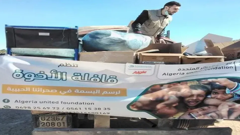 نظم المكتب الوطني لمؤسسة الجزائر المتحدة الخيرية وبالتنسيق جمعية بناة مستقبل مشرق الاجتماعية لولاية أدرار، قافلة إنسانية خيرية تضامنية تضم مساعدات لفائدة الفئات.