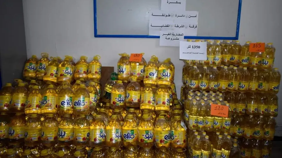 تمكن أمـن دائـرة طولقة من حجز 1350 لتر من زيـت المائـدة و590 كلغ من مادة السميد كانت موجهة للمضاربة غير المشروعة. وإثر معلومة وردت إلى قوات الشرطة بأمن دائرة طولقة مفادها أن صاحب محل تجاري يقوم بتخزين مادة زيت المائدة المدعم، على الفور باشرت المصلحة التحقيق في القضية من خلال البحث والتحري اتضح أن هناك مستودعين غير مرخصين يستغلان للتخزين وغير مصرح به (مرأب بجوار المحل، مرأب الآخر بمسكنه الخاص ) وبمعاينة المحل لم تكن هناك مادة الزيت معروضة للزبائن، بالتنسيق مع النيابة المحلية واستصدار إذن بالتفتيش تم العثور داخل المرأبين على كمية إجمالية قدرت بـ: 1350 لتر من مختلف الأحجام (01 ليتر، 02 لتر و 05 ل...