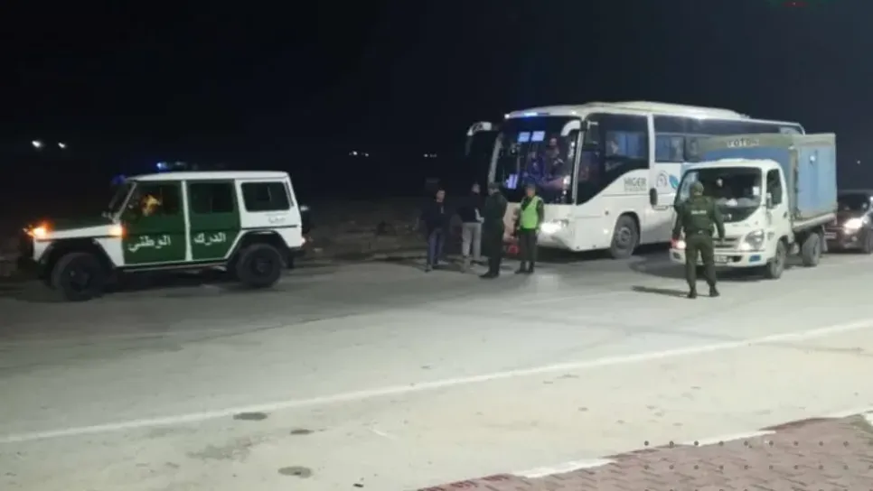 أوقف أفراد فرقة الأمن والتحري للدرك الوطني بعين البيضاء، مجموعة البواقي، فجر اليوم السبت، سائق حافلة لنقل المسافرين، مستوى الطريق الوطني رقم 10.