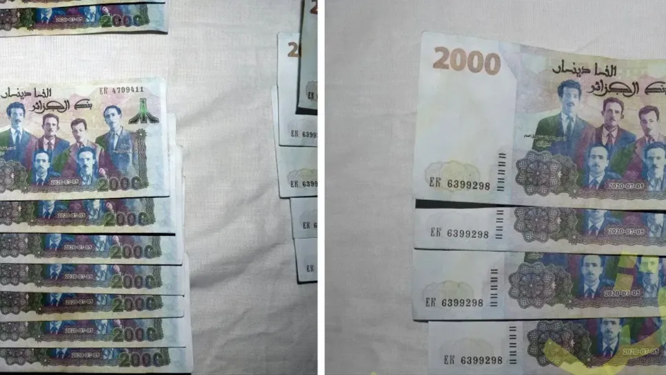 وتم الإطاحة بالمشتبه به الأول متلبسا بجرمه بعدما كان يقوم بتداول مبلغ مالي وسط المحلات التجارية، وضبط بحوزته بعد إخضاعه لعملية التلمس القانوني على مبلغ مالي قدره 46 ألف دينار من فئة 2000 دج مزورة.