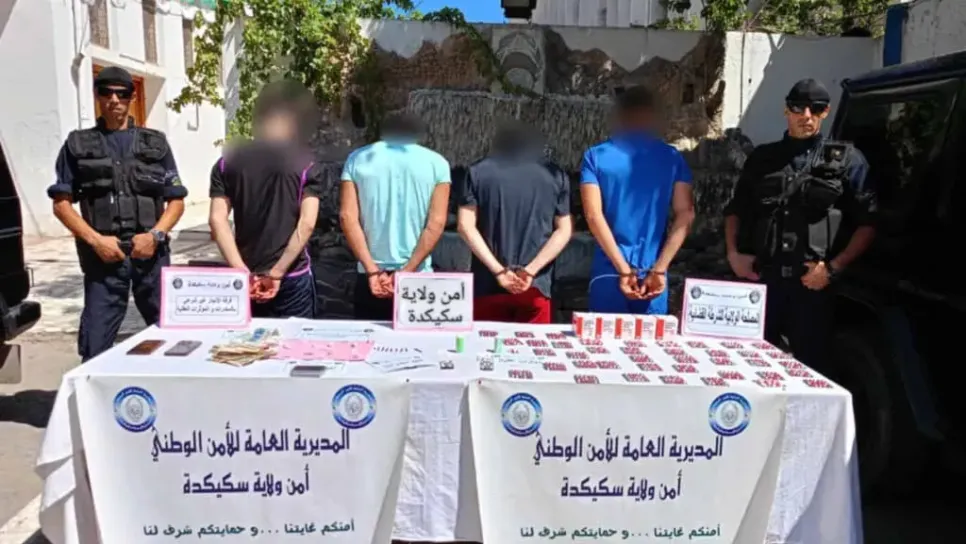 تمكنت فرقة مكافحة المخدرات بمصلحة الشرطة القضائية بأمن سكيكدة توقيف 4 أشخاص وحجز كمية المخدرات الصلبة كوكايين والمؤثرات العقلية والقنب الهندي انطلقت العملية.