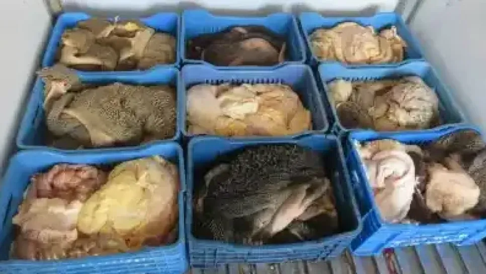كشفت عملية توقيف شاحنة ببلاغ من الرقم الأخضر، عن حجز كمية كبيرة من أحشاء البقر، غير صالحة للاستهلاك البشري، كانت بصدد التوزيع، وكمية أخرى بمسكن تطحن وتطهى فيه لتباع في شكل وجبة خفيفة "سندويش". وذكر بيان مصالح الأمن أن العملية تمت إثر بلاغ على الرقم الأخضر، مفاده وجود شاحنة تبريد بصدد توزيع كمية من الأحشاء الداخلية للبقر " دوّارة" بأحد أحياء مدينة تيارت، تنقّل في أعقابه أفراد الشرطة لمصلحة الأمن العمومي والأمن الحضري الأول، مرفوقين بأعوان التجارة ومصالح البيطرة، أين ضبطوا صاحب شاحنة يبلغ من العمر 21 سنة، يسلّم الأحشاء الداخلية للبقر لصاحب مسكن، يبلغ من العمر 45 سنة، تمثلت في 877 كلغ، تبين أن 1...