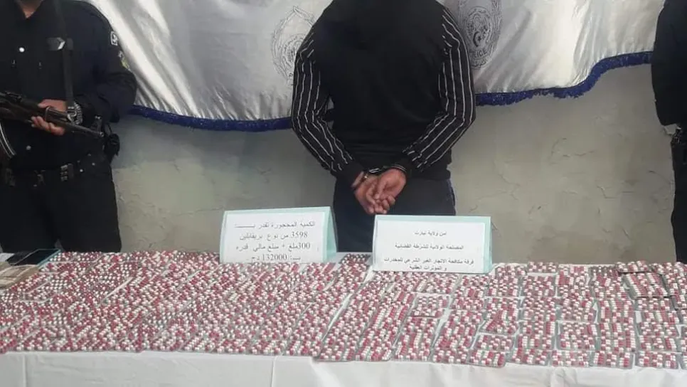 حجز عناصر فرقة مكافحة الإتجار الشرعي بالمخدرات المؤثرات العقلية التابعة لمصلحة الشرطة القضائية لأمن ولاية تيارت، 3598 قرص مهلوس ومبلغ مالي عائدات الإتجار.