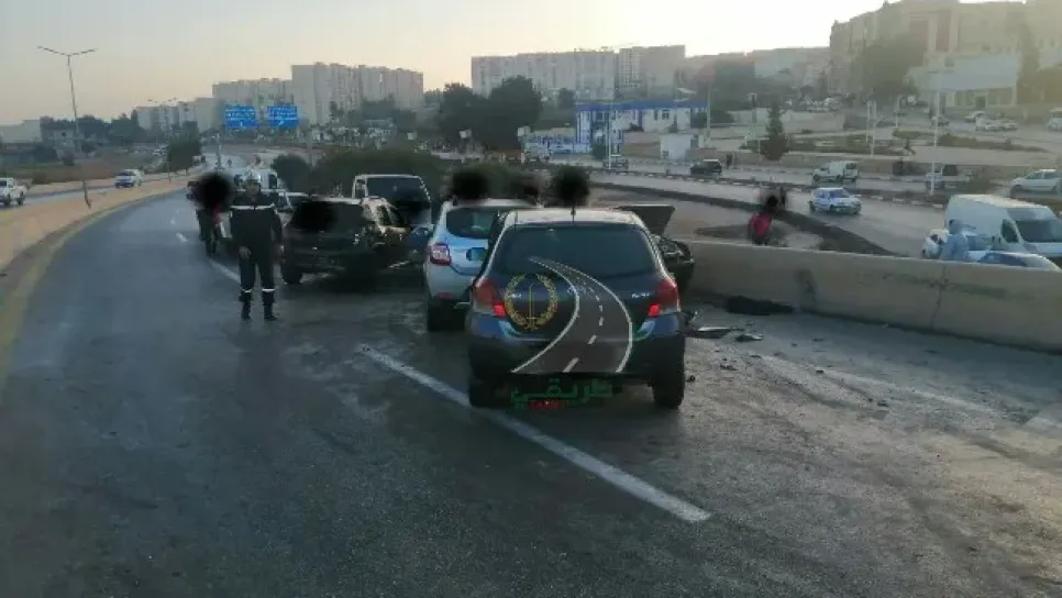 أصيب سبعة أشخاص في اصطدام تسلسلي لثماني مركبات صباح اليوم الإثنين بالطريق السريع الرابط بين ولايتي تيبازة والجزائر العاصمة. وأفاد خلية الإعلام الاتصال للحماية المدنية إن فرقتها لوحدة بواسماعيل مدعمة بوحدات الرئيسية ودواودة وعين تقورايت تدخلت صباح هذا الإثنين في حدود الساعة السادسة وأربعين دقيقة (06:40) لأجل حادث مرور يتمثل في اصطدام تسلسلي لثماني سيارات بالطريق السريع بواسماعيل اتجاه الجزائر. وأضاف نفس المصدر إن الحادث خلف إصابة سبعة ضحايا من كلا الجنسين لهم جروح مختلفة تم تقديم الإسعافات ر الأولية لهم في عين المكان ونقلهم إلى مستشفى بواسماعيل.