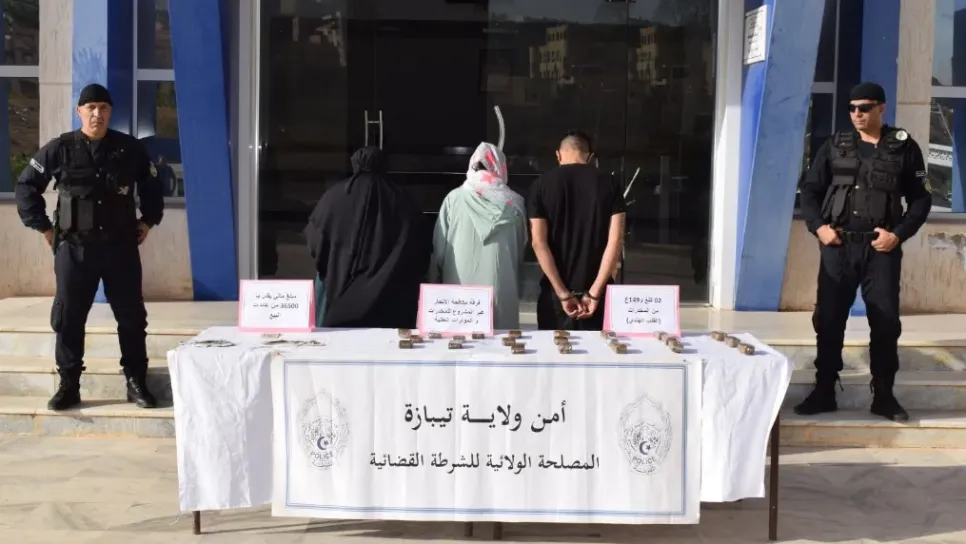 أطاحت فرقة مكافحة الاتجار غير المشروع بالمخدرات والمؤثرات العقلية بالمصلحة الولائية للشرطة القضائية بأمن ولاية تيبازة بشبكة إجرامية منظمة مختصة في ترويج المخدرات، وحجزت لديها أزيد من 2 كلغ من الكيف. جاءت العملية حسب مصالح أمن ولاية تيبازة، بعد تحصل ذات الفرقة على معلومات بنشاط أفراد هذه الشبكة عبر إقليم ولاية تيبازة، وبالتنسيق الدائم مع النيابة المحلية تم توقيف 03 أشخاص، وعلى إثر تنفيذ إذن بتفتيش المسكن تم ضبط كمية من المخدرات قدر عددها بـ 22 صفيحة بوزن إجمالي مقدر بـ02 كغ و149 غ، إضافة إلى مبلغ مالي يقدر بـ 22000دج من عائدات الترويج. وبعد إتمام إجراءات التحقيق تم إنجاز ملف قضائي ضد ال...