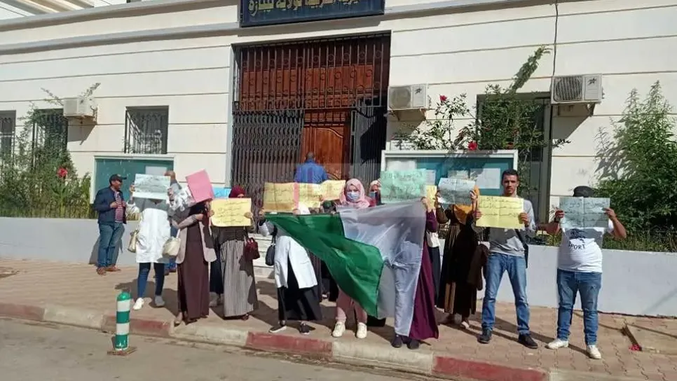 نظم اليوم، الأساتذة الإحتياطيون بولاية تيبازة وقفة احتجاجية أمام مديرية التربية بالولاية للمطالبة بتوظيفهم، كما طالبوا بفتح تحقيق في طريقة تعيين الأساتذة الاحتياطيين منذ سنة 2017. وتجمع المحتجون أمام المدخل الرئيسي لمديرية التربية رافعين لافتات ورددوا شعارات منددة بالتأخر في إدماج الأساتذة الاحتياطيين منها " الإدماج حق مشروع " ،" الاحتياطيون غاضبون التوظيف يطالبون " ،" الإسراع في التوظيف وعدم التماطل " و" أين الشفافية نطالب بإحصاء المناصب الشاغرة" . ورفع الأساتذة المحتجون في الأطوار الثلاثة جملة من المطالب التي قالوا أن مديرية التربية هضمتها، منها نشر القائمة الاحتياطية الخاصة بالطور...