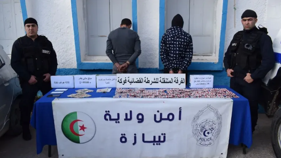 أطاحت الفرقة المتنقلة للشرطة القضائية بفوكة بأمن ولاية تيبازة، بشخصين ينشطان ضمن شبكة إجرامية منظمة مختصة في ترويج المخدرات والمؤثرات العقلية وحجزت أزيد من ألفي كبسولة بريغابالين. وأشارت مصالح أمن ولاية تيبازة اليوم، أن العملية جاءت بعد توصل المصلحة لمعلومات تفيد بنقل المعنيين كمية من المؤثرات العقلية على متن مركبة سياحية، لغرض بيعها بمدينة فوكة وبعد الترصد لها تم توقيفها وتفتيش السيارة، أين ضبطت كمية من المؤثرات العقلية مقدرة بـ2010 كبسولة من نوع بريغابالين، كما تم ضبط مبلغ مالي مقدر بـ 49500 دج، حيث تم حجز المركبة لفائدة التحقيق. وينتظر تقديم المشتبه فيهم أمام النيابة المختصة بعد إستيفاء م...