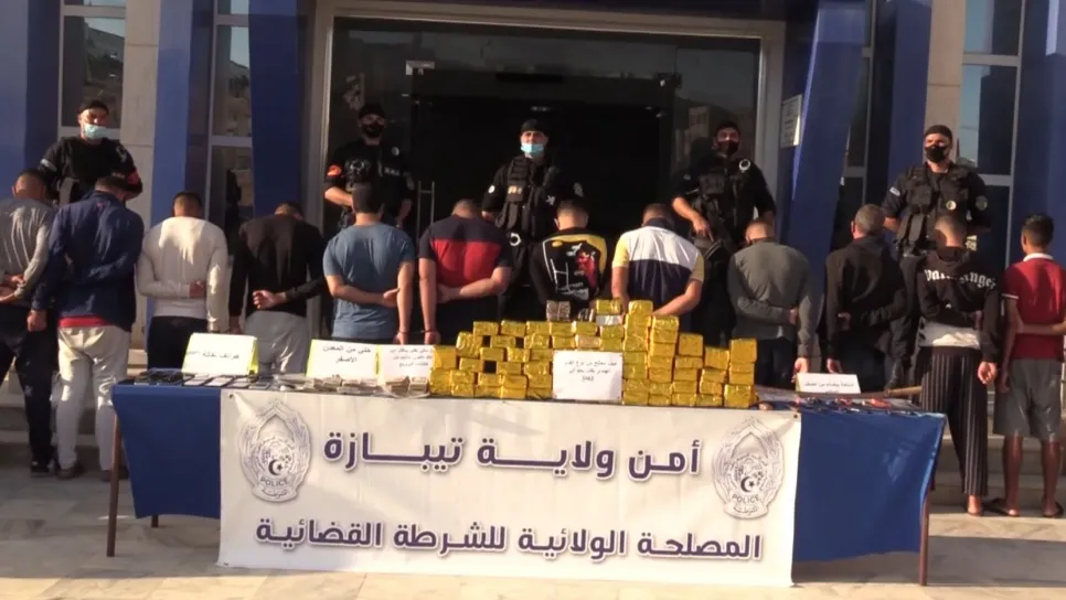 تمكنت عناصر الأمن الوطني، من حجز كمية معتبرة من المخدرات في ولاية تيبازة. وحسب بيان ذات المصالح، اليوم الخميس، تمكنت فرقة البحث والتدخل بالتنسيق مع فرقة مكافحة المخدرات بالمصلحة الولائية للشرطة القضائية بأمن ولاية تيبازة، من تفكيك شبكة إجرامية منظمة عابرة للحدود، تتكون من 12 شخصا مشتبه فيه. وأضاف البيان، إن العملية مكنت من حجز 41 كيلوغراما من الكيف المعالج واسترجاع ثلاث مركبات وثلاث دراجات نارية وأسلحة بيضاء من مختلف الأحجام، كما تم استرجاع 214 مليون سنتيم من عائدات الترويج. وبعد استيفاء الإجراءات القانونية، تم تقديم الأطراف أمام الجهات القضائية المختصة.