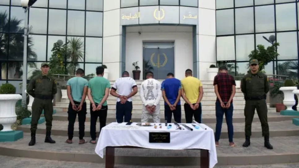 شلت وحدات المجموعة الإقليمية للدرك الوطني بتيبازة نشاط عصابتي أحياء أثارتا الرعب في أوساط سكان حي الكتيبة العمارية ببوسماعيل . العملية التي اسفرت عن توقيف سبعة أشخاص وحجز أسلحة بيضاء محظورة تعود، بحسب بيان للدرك اليوم، لمعلومات تحصلت عليها الكتيبة الإقليمية للدرك الوطني بالقليعة، حول متاجرة شخصين بالمؤثرات العقلية على مستوى حي الكتيبة العمارية ببلدية بوسماعيل، ليتم توقيفهما من طرف دورية لأفراد الفرقة الإقليمية للدرك الوطني ببوسماعيل مدعمين بأفراد فرقة الأمن والتحري بالقليعة.  تحقيقات أفراد فصيلة الأبحاث للدرك الوطني بتيبازة بينت أن الموقوفين ينتميان لعصابتي أحياء تنشران الرعب وتمسان بال...