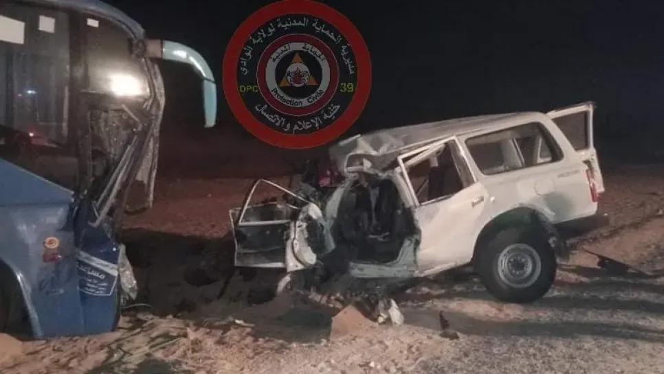 توفي ثلاثة أشخاص وأصيب آخر إثر حادث مرور على مستوى الطريق الوطني رقم 16 بولاية الوادي. وأوضح بيان الحماية المدنية عبر صفحتها الرسمية في "فايسبوك"، اليوم الأربعاء، أن مصالح الحماية المدنية لولاية الوادي تدخلت ليلة 26 جانفي، وبدعم من الوحدة الرئيسية للحماية المدنية والمركز المتقدم قمودي لخضر إثر حادث مرور خطير ومميت في حدود الساعة 22:10 ليلا على مستوى الطريق الوطني رقم 16 ، حوالي 3 كلم من مقر وحدة أميه ونسة. وأضاف المصدر ذاته، أن الحادث وقع بسبب اصطدام مباشر وعنيف بين حافلة لنقل المسافرين من نوع هيڨر تشتغل على خط حاسي مسعود تبسة وسيارة من نوع تويوتا رباعية الدفع خلف ثلاثة قتلى كانو...