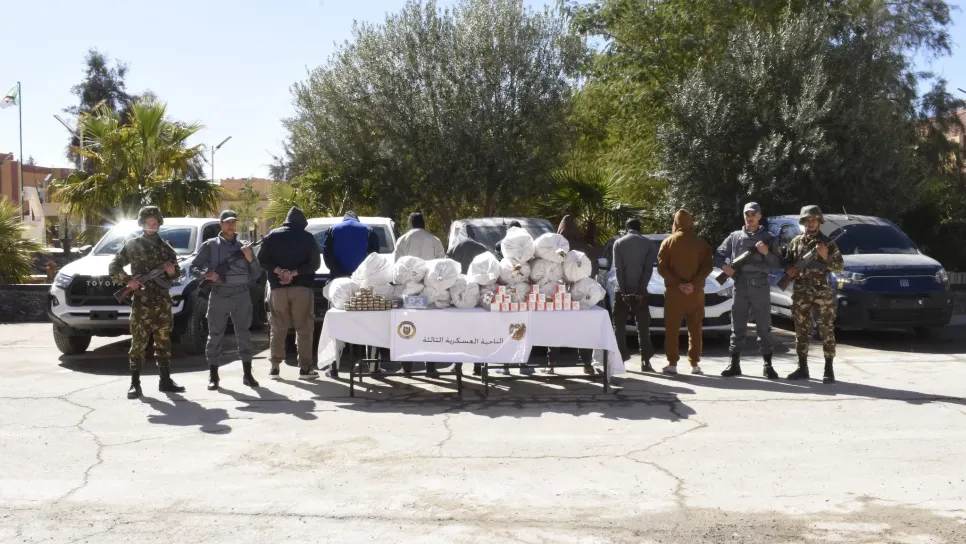 ففي إطار محاربة الجريمة المنظمة و"مواصلة للجهود الحثيثة الهادفة إلى التصدي لآفة الاتجار بالمخدرات ببلادنا، أوقفت مفارز مشتركة للجيش الوطني الشعبي، بالتنسيق مع مختلف مصالح الأمن خلال عمليات عبر النواحي العسكرية، 45 تاجر مخدرات وأحبطت محاولات إدخال 8 قناطير و32 كيلوغراما من الكيف المعالج عبر الحدود مع المغرب، فيما تم حجز 33,78 كيلوغراما من مادة الكوكايين و773.306 قرص مهلوس"، وفقا لما تضمنته الحصيلة.