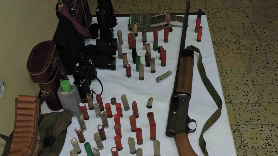 تمكنت أمس فرقة البحث والتحري بأمن ولاية البيض من توقيف ثلاثة أشخاص تراوحت أعمارهم ما بين 31و57 سنة وحجز بندقية تكرارية عيار 16 ملم وثلاثة مناظير ميدانية و100 خرطوشة و300 كبسولة. وقد تمت العملية باستغلال معلومة مؤكدة عمل عليها المحققون وكثفوا دوريات المراقبة والترصد لتحركات الأشخاص المشتبه فيهم وتحديد مقر أقاماتهم ضواحي البيض، وبعد استصدار أمر بتفتيش مساكنهم تم العثور على السلاح الناري والذخيرة الحية، وقد تم استكمال كافة إجراءات التحقيق على أن يحال الموقوفون على وكيل الجمهورية لدى محكمة البيض بتهمة حيازة سلاح ناري وذخيرة حية وأجهزة حساسة بدون ترخيص.