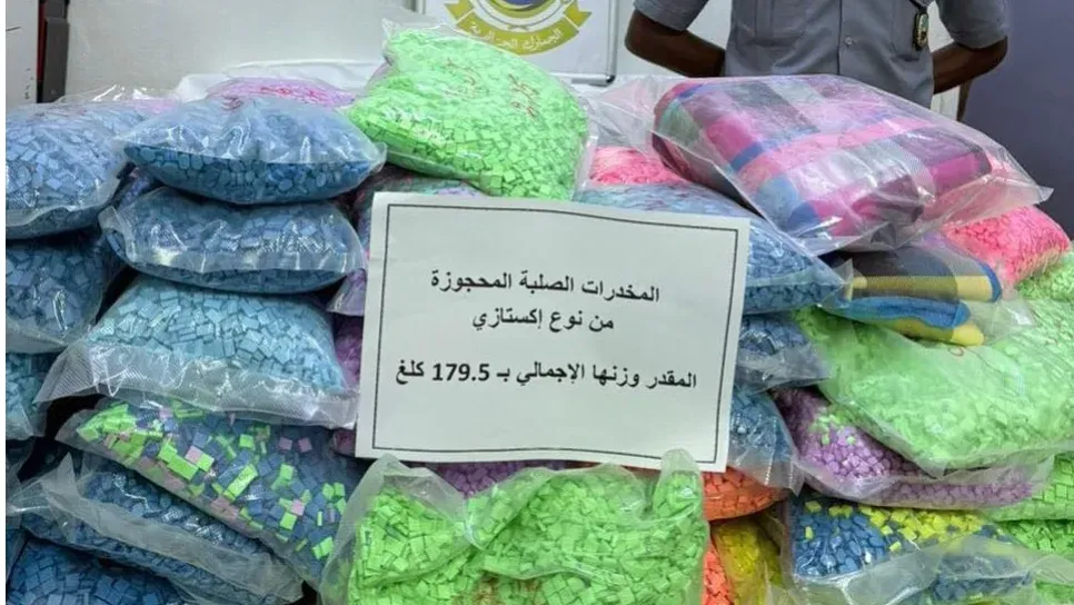 ومكنت العملية من ضبط 400.000 قرص مهلوس من نوع "إكستازي"، بوزن إجمالي قدره 179,5 كلغ.