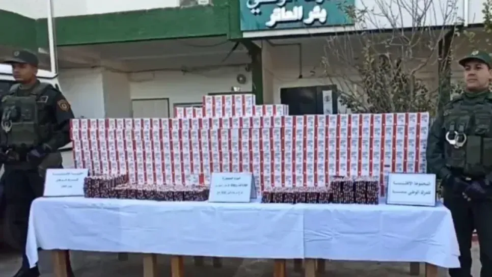تمكن أفراد فرقة الأبحاث للدرك الوطني ببئر العاتر من الإطاحة بشبكة إجرامية وحجز كمية جد معتبرة من المؤثرات العقلية أجنبية الصنع المستوردة عن طريق التهريب. وأوضح بيان للدرك الوطني، بأن حيثيات القضية تعود لورود معلومات إلى أفراد الفرقة مفادها وجود نشاط إجرامي لشبكة تقوم بتهريب والإتجار غير الشرعي بالمؤثرات العقلية، استغلالا للمعلومة تم وضع خطة محكمة بالتنسيق بين وحدات الكتيبة من خلال تعزيز التواجد الميداني لتطويق وغلق جميع المنافذ المحتمل استغلالها من طرف المهربين، ونظرا لتشديد الخناق قام أفراد الشبكة بتفريغ الشحنة وتمويهها بأحد المزارع الغابية المنعزلة والمهجورة ذات المسالك الوعرة. وأسفرت ال...