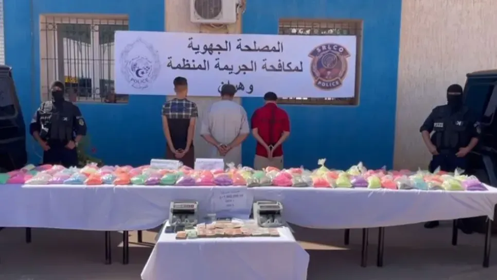 تمكنت المصلحة الجهوية لمكافحة الجريمة المنظمة SRLCO وهران، خلال هذا الأسبوع، من تفكيك شبكة إجرامية دولية منظمة تتكون من 03 أشخاص، تنشط في ترويج المؤثرات العقلية. وجاء في بيان المديرية العامة للأمن الوطني، "تواصل الوحدات العملياتية المتخصصة للأمن الوطني جهودها في التصدي لكافة أشكال الجرائم، حيث تمكنت المصلحة الجهوية لمكافحة الجريمة المنظمة SRLCO وهران، خلال هذا الأسبوع، من تفكيك شبكة إجرامية دولية منظمة، تتكون من 03 أشخاص، تنشط في ترويج المؤثرات العقلية". وأوضح ذات المصدر، "الأبحاث العملياتية ويقظة محققي المصلحة، أفضى إلى إحباط مخطط إجرامي لتمرير كميات معتبرة من المؤثرات العقلية بولاية...