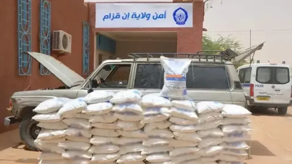 تمكنت شرطة إن قزام، من توقيف أربعة أشخاص، وحجز كمية معتبرة من المواد الغذائية كانت موجهة للتهريب. وأوضح بيان لذات المصالح، أن العملية مكنت من ضبط 867.5 قنطار من المواد الغذائية الأساسية واسعة الاستهلاك من مادتي الفرينة والسكر. كما مكنت العملية من توقيف 4 أشخاص من بينهم رعيتين أجنبيتين، وحجز الشاحنة التي كانت تستغل في العمل الإجرامي.