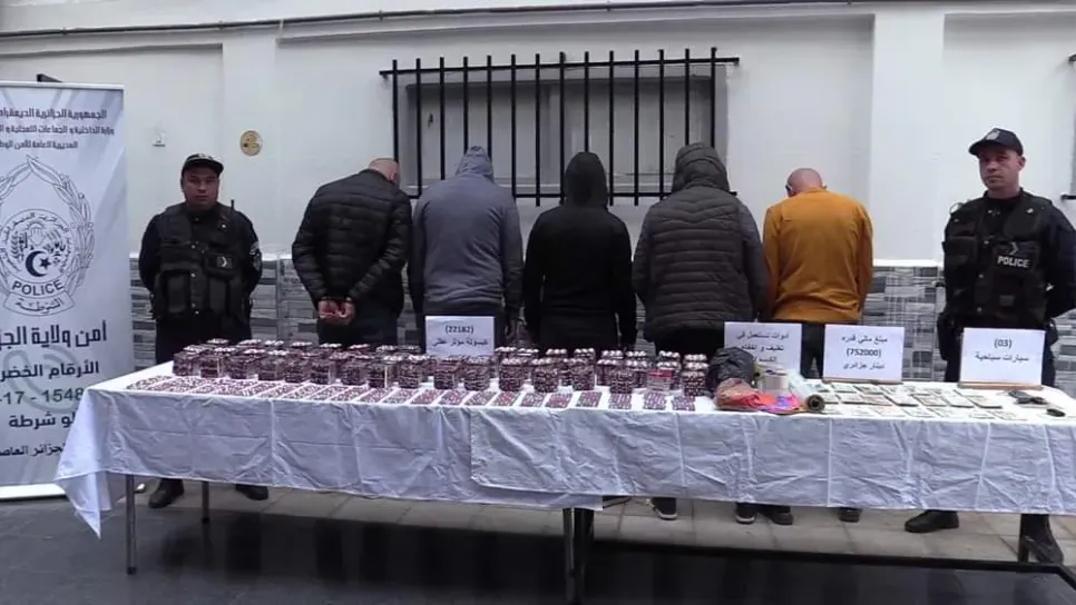 تمكنت شرطة العاصمة، بحر هذا الأسبوع، في قضايا متفرقة عالجتها المصالح العملياتية لكل من مقاطعتي الشرطة القضائية الأولى الجزائر الوسطى والرابعة ببوشاوي، أمن المقاطعات الإدارية لسيدي أمحمد، براقي والرويبة، من توقيف 30 شخصا كانوا ينشطون ضمن شبكات إجرامية منظمة، مختصة في الاتجار غير المشروع بالمخدرات والمؤثرات العقلية.ا لعمليات التي تمت بالتنسيق مع الجهات القضائية المختصة، أسفرت عن ضبط وحجز 151381 قرص مؤثر عقلي، بعضها كان مموها داخل خزان بنزين و10,8 كلغ من الكيف المعالج إضافة إلى أسلحة بيضاء محظورة ومبلغ مالي بالعملة الوطنية 537 مليون سنتيم. وقد تم تقديم المشتبه فيهم أمام الجهات القضائية المختصة...