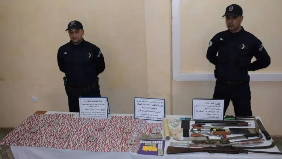 تمكن أفراد الشرطة لفرقة مكافحة المخدِّرات بالمصلحة الولائية للشرطة القضائية بأمن ولاية بشـار في توقيف مشتبه فيه بعد أن حجزت بحوزته كمية معتبرة من المخدِّرات، بندقية تقليدية الصنع وأسلحة بيضاء. وأشار بيان خلية الاتصال والعلاقات العامة لأمن ولاية بشار أن العملية تمت بعد استغلال أفراد الشرطة لفرقة مكافحة المخدِّرات بأمن ولاية بشـار، لمعلومات مفادها قيام مشتبه فيه بتخزين وترويج المخدِّرات، مستغلا في ذلك مسكنه الخاص، ليتم اتخاذ كافة الإجراءات الأمنية والقانونية اللازمة، والتي مكنت من توقيف المشتبه فيه محل القضية، وتفتيش مسكنه الخاص بموجب إذن عن نيابة الجمهورية لدى محكمة بشـ...