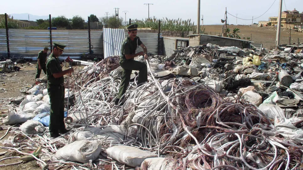 أحبطت مصالح أمن دائرة الماء الأبيض أمس محاولة تهريب 40 طنا من قوالب مادة الألمنيوم كانت موجهة للتهريب نحو تونس لتموين شبكات تصدير المعادن والنفايات نحو أوربا.وبحسب ما توفر لدينا من معلومات فإن مصالح أمن دائرة الماء الأبيض شرق تبسة حول توفرت لديها تقارير أمنيةة مفادها قيام أصحاب الشاحنات ذات الوزن الثقيل بنقل مادة النحاس والالمنيوم الى المناطق الحدودية و من ثم تهريبها الى الجمهورية التونسية والتي تعبر إلى أوروبا فقد أسفرت عملية مراقبة لوثائق جرار بالمدخل الشمالي للمدينة كان صاحبها يحمل كمية من حصى البناء وعند تعميق التفتيش أن مادة البناء مخصصة لتمويه الحواجز الأمنية وأن الشاحنة محملة بكمية 40 ط...