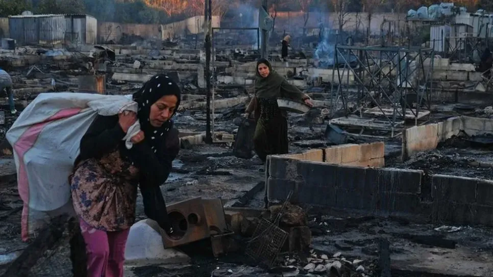 AFP عاد البعض للمخيم لتفقد ما تبقى من أغراضهم. ضجت مواقع التواصل الاجتماعي بصور لحريق ضخم اندلع ليل السبت في مخيم للاجئين السوريين في لبنان.وكانت وكالة الأنباء اللبنانية قد ذكرت بأن عددا من المواطنين في منطقة المنية شمالي البلاد أضرموا النار في مخيم للاجئين بعد شجار اندلع بين أحد أفراد عائلتهم وعمال سوريين.وطال الحريق كل المساكن المبنية من مواد خشبية وبلاستيكية داخل المخيم الذي يضم حوالي 75 أسرة سورية لاجئة باتوا الآن في العراء، وفق ما ذكرته وكالة الأنباء الفرنسية.لحظات هلعوقد أظهرت مقاطع مصورة منتشرة عبر مواقع التواصل، لحظات الرعب التي عاشها سكان المخيم بعد أن حاصرت ال...