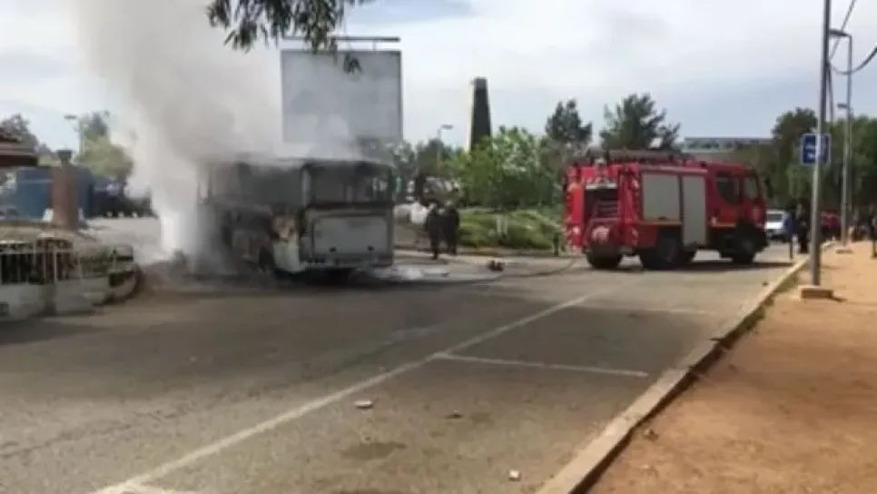 حريق يلتهم حافلة بحديقة بن عكنون (فيديو)