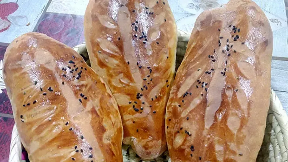 المقادير03 كؤوس فرينة، بيضة كاملة وبياض بيض، ونترك الصفار لدهن الخبز1/4 كاس زيت، ملح،1 ياغورت طبيعى، 1 قطعة سكر، 1م ك خميرة خبز، كيس خميرة نورة، م ك سنوج، 20 غ زبدة طرية،ماء دافي، ولدهن الخبز نضع صفار بيضة مع ملعقة صغيرة قهوة. التحضير * نضع في الكأس خميرة الخبز وخميرة نوارة مع الماء دافئ والسكر ونتركه يتخمّر.* نخلط كل المكونات مع الخميرة معادى الزبد ونجمع بالماء ونعجن حتى نحصل على عجينة طرية. * نضيف الزبدة ونعجن مدة 10 د ونتركه يختمر.* عندما يختمر نكسر العجينة. * نرش طويلة العمل بالفرينه ونقوم بصنع الخبز. يوضع متباعد قليلا على ورقة زبدة في صينية. * يدهن الوجه بصفار البيض.* يترك لكي يختمر مرة أ...