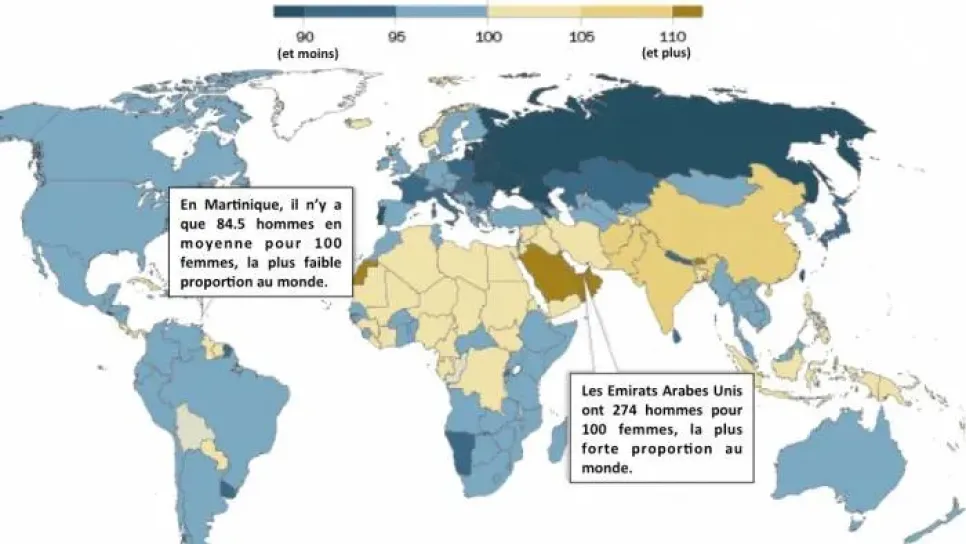 أكدت بيانات جمعتها الأمم المتحدة تفيد بإن عدد الرجال والنساء في العالم هو نفسه تقريبا، وهناك في المتوسط 101.8 رجال لكل 100 امرأة في العالم. ومع ذلك، عند النظر في هذه البيانات على المستوى الوطني، وهناك اختلافات كبيرة بين عدد النساء وعدد الرجال في بلد معين، وفقا لبحث أجرته شركة الاستشارات الأميركية مركز بيو للأبحاث. ففي شمال أفريقيا مثلا منها الجزائر وليبيا ومصر، الرجال أكثر من النساء، باستثناء المغرب وتونس، حيث النساء أكثر عددا. موريتانيا ومالي والنيجر وتشاد والسودان هي البلدان التي يفوق عدد الرجال من النساء. السنغال، بوركينا فاسو، غانا وبنين وتوغو، تهيمن النساء في الأرقام....