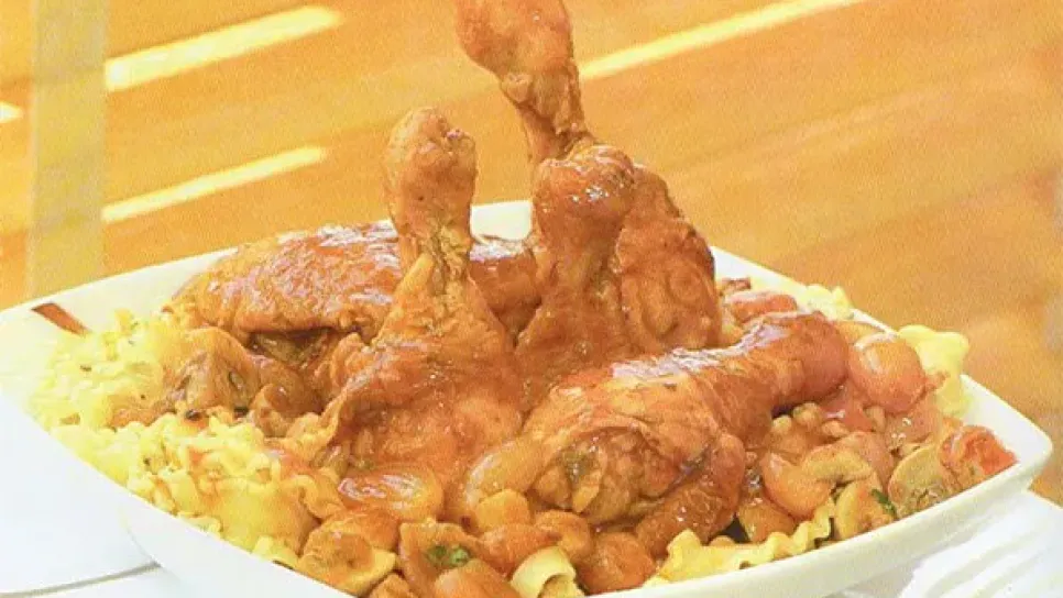 المقادير 1دجاجة متوسطة ومقطعة إلى أطراف، ½ كاس فرينة، 1ملعقة كبيرة فلفل أحمر، ملح، فلفل أكحل، ملعقة كبيرة زيت، 3 حبات بصل، ½ ربطة كرافس مقطعة رقيق، 2 سنينات ثوم مدروس، 500 غ فطر مقطع، 2 ملعقة كبيرة خل أحمر، ½ كاس طماطم مصبرة 2 كاس مرق دجاج، 2 أوراق رند، 1ملعقة كبيرة معدنوس مقطع رقيق.التحضير نغسل قطع الدجاج جيدا ثم نجففها، في وعاء نضع الفرينة، فلفل أحمر ونخلط ثم نضيف ملح، فلفل أكحل، نضع أطراف الدجاج في خليط الفرينة ونرمّدها جيدا. نضع في مقلاة الزيت ونتركه يسخن على نار متوسطة، نحمر أطراف الدجاج من كل الجهات حتى يصبح لونها ذهبيا ثم نضعها جانبا . في نفس المقلاة نضيف...