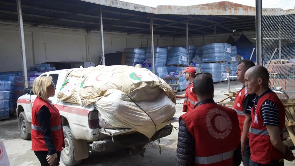 أشرفت رئيسة الهلال الأحمر الجزائري، حملاوي ابتسام، اليوم الإثنين، على شحن الدفعة الثالثة من المساعدات لصالح المتضررين جراء الفيضانات الأخيرة التي مست ولاية تيبازة. وأكدت حملاوي على الجاهزية التامة لمخازن الهلال الأحمر الجزائري وتوفر كل الإمكانيات اللازمة لكل طارئ. وتمثلت المساعدات المرسلة في أفرشة، أغطية، حفاظات للكبار والصغار وغيرها.