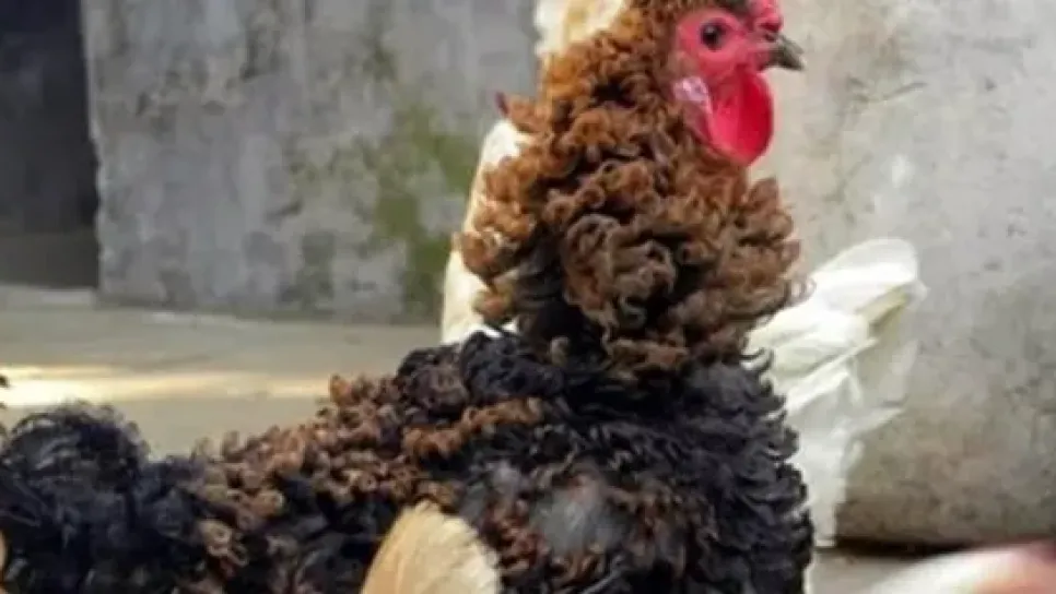 يتمتع هذا الديك الصيني بريش يميزه عن غالبية ديوك العالم كافة، إذ تجعّد ريشه بعد أسابيع من ولادته، وقد حقق هذا الديك شهرة بين سكان مقاطعة "خنان" في وسط الصين، علما أن الديوك الأخرى ربما لا ترى فيه شيئا غير عادي أو انه يتميز عنها يشار إلى أن الريش المجعد الذي يتمتع به هذا الديك لا يعتبر الحالة الأولى من نوعها، ويعود ذلك إلى خصائص وراثية في الريش، وتحديدا إلى جين معين يؤدي وجوده إلى تجعد الريش، عوضا عن أن يكتسب شكله الطبيعي المستقيم والأملس.وعلى الرغم من أن هذا النوع من الريش لا يؤثر سلبا في صحة الديك، إلا أنه يجعله عرضة للتعري في أي لحظة، إذ أن هذا الريش المجعد هش ويسهل اقتلاعه، بالإضافة إلى أنه...