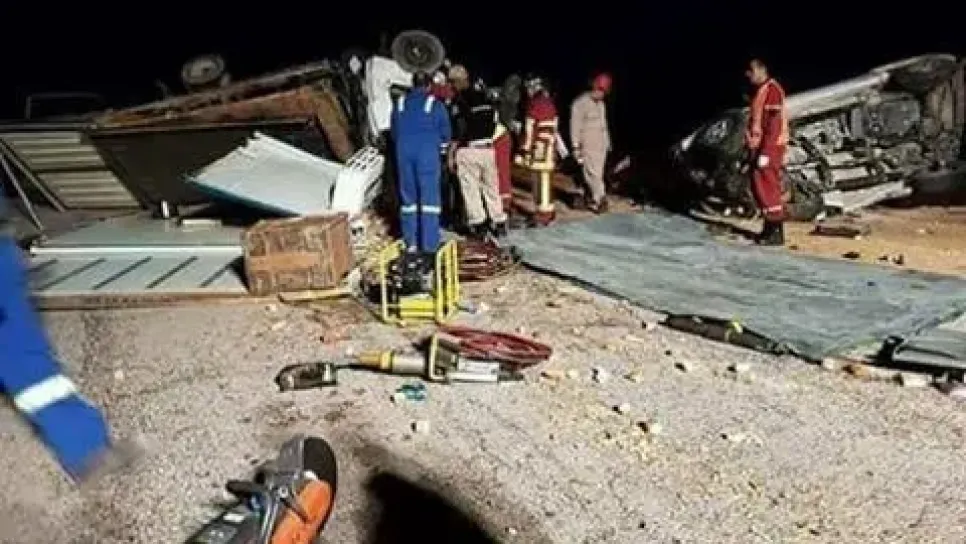 لقي ليلة السبت إلى الأحد، 06 أشخاص حتفهما وأصيب إثنان آخران بجروح في حادث مرور خطير، وقع بمنطقة المرك البترولية التابعة لبلدية الدبداب بولاية إليزي. وحسب مصادر "الخبر"، فإن الحادث الذي وقع في حدود الساعة الثامنة مساء، يتمثل في اصطدام شاحنة تبريد بسيارة من نوع تويوتا هيليكس تابعة لشركة الحفر "نايبورس" مما أدى إلى وفاة 6 أشخاص تتراوح أعمارهم ما بين (28 و 53 سنة) بعين المكان متأثرين باصاباتهم، فيما تعرض شخصان لجروح متفاوتة الخطورة نقلوا على إثرها بمعية جثث الضحايا إلى مستشفى حاسي مسعود بورقلة. بينما فتحت مصالح الدرك الوطني تحقيقا لمعرفة ظروف وملابسات الحادث.