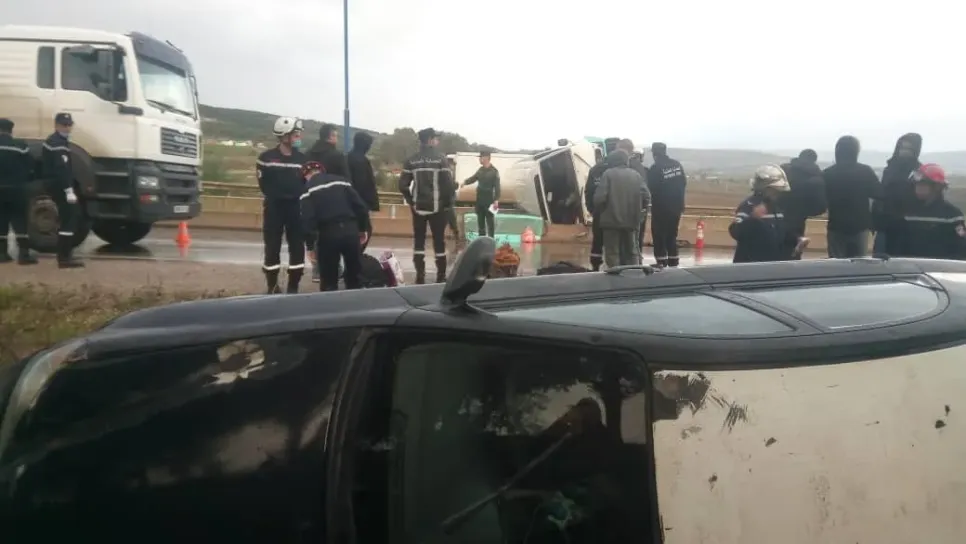 تدخلت إسعافات الوحدة الثانوية رمضان جمال الشهيد زندوح عيسى مدعمة بالوحدة الرئيسية المجاهد المتوفي سعودي الكنز، اليوم الثلاثاء، على الساعة الثامنة و34 دقيقة لأجل حادث مرور يتمثل في انحراف وانقلاب حافلة لنقل العمال بالمكان المسمى الطريق الوطني رقم 44 بالقرب من منطقة عين غراب بلدية ودائرة رمضان جمال. وأفاد بيان لخلية الإعلام والاتصال، أنه تم تسجيل حادث ثان في عين المكان، يتمثل في انحراف سيارة سياحية، حيث تم نقل 03 ضحايا إلى مستشفى سكيكدة على متن سيارة الإسعاف التابعة للحماية المدنية، البالغين من العمر (56-40-41) سنة من جنس ذكر مصابين بجروح مختلفة مع تحطم شبه كلي للحافلة وتحطم كلي للجهة اليسرى لل...