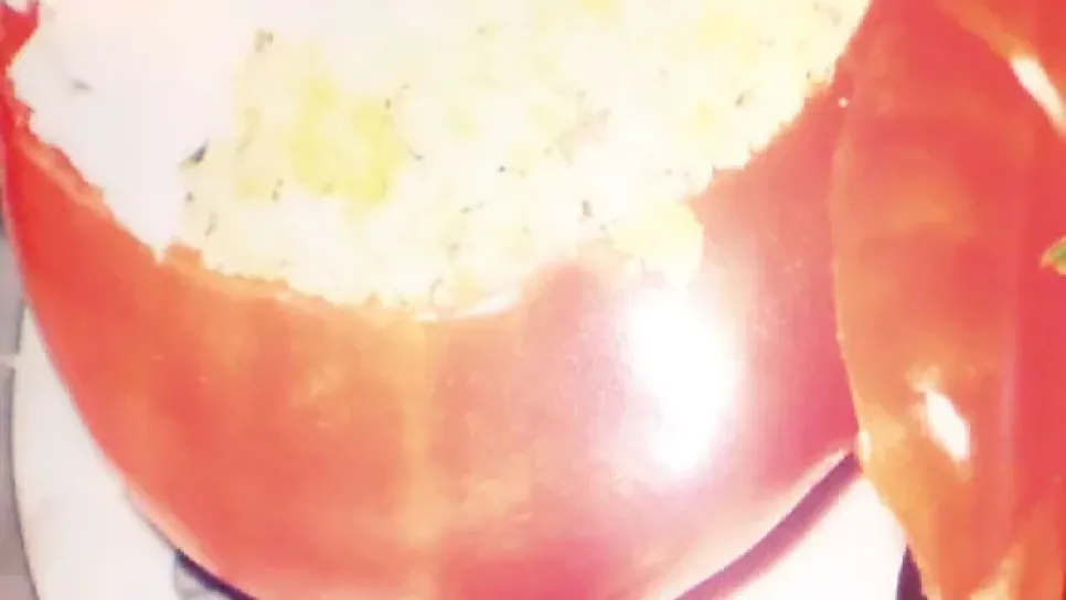 المقادير 3 حبات طماطم ـ 100غ لحم مفروم ـ بصلة ـ 100 غ أرز ـ 2 بيض ـ فلفل أبيض ـ قرصة ملح ـ 2 ملاعق كبار مايونيز ـ حبيبات زيتون أسود ـ معدنوس ـ زيت زتون ـ 2 ملاعق كبيرة زيت كيفية التحضيرـ ضعي في مقلاة ملعقتين كبيرتين زيت لتسخن، ضعي فيها اللحم المفروم مع ملح، فلفل أبيض، تقلى لمدة 5 د على نار هادئة. ـ من جهة أخرى غلي الأرز في ماء مملح، ثم قطعي حبة البصل إلى قطع صغيرة. ـ امزجي كلا من اللحم المفروم بعد تركه فترة يبرد، والبصل، الأرز، وأضيفي لها كمية قليلة من المايونيز، وامزجيهم جيدا، وضعي هذا الحشو في حبات الطماطم بعد أن تنزعي منها اللب الداخلي (بذور) وأضيفي لهما زيت زيتون ثم...