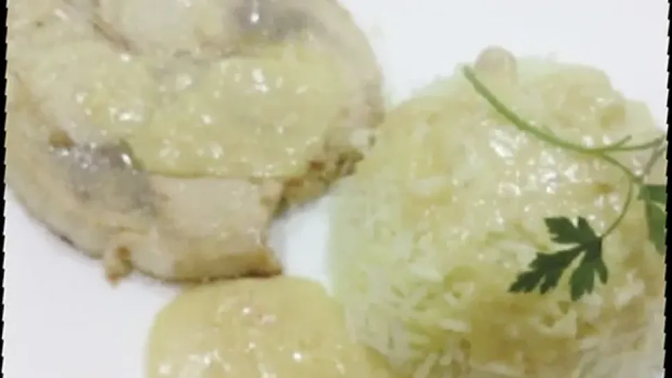 المقاديرسمك، ثوم، زبدة، ملح، فلفل أسود، عصير الليمون، كوب أرز بسمتي. التحضير* نمزج الثوم المهروس مع عصير الليمون، الملح والفلفل الأسود، ثم نضيف قطع السمك ونمزج الكل ونتركه ساعة تقريبا. نضع ملعقة زبدة في مقلاة، ونطهو السمك من الجهتين. ننزع السمك، ونضيف ملعقة كبيرة فرينة وملعقة صغيرة خردل وملح، وقليل من الماء. يترك على نار هادئة إلى أن يعقد. فى إناء، نضع كوبا من الأرز وكوبين ماء وملعقة كبيرة زيت، وملح ونتركه يغلى على النار. عند طهي الأرز، يصفى الأرز ويوضع في القوالب. في صحن التقديم، نضع الأرز والإسبادون ويزين بالصلصة.