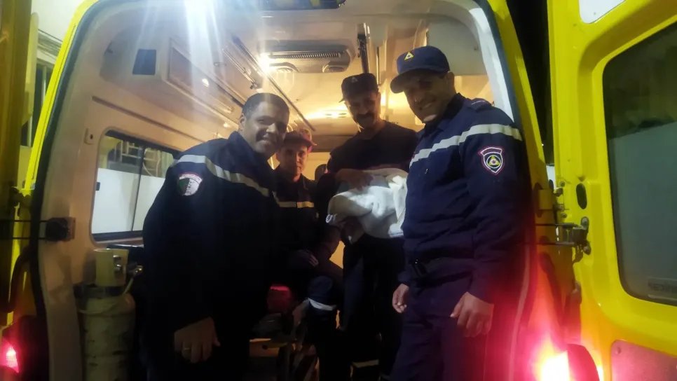 أشرف أعوان وحدة تلموني التابعة لمديرية الحماية المدنية بسيدي بلعباس الدقائق الأول صبيحة اليوم السبت عملية توليد ناجحة لسيدة بداخل سيارة الإسعاف المخاض.