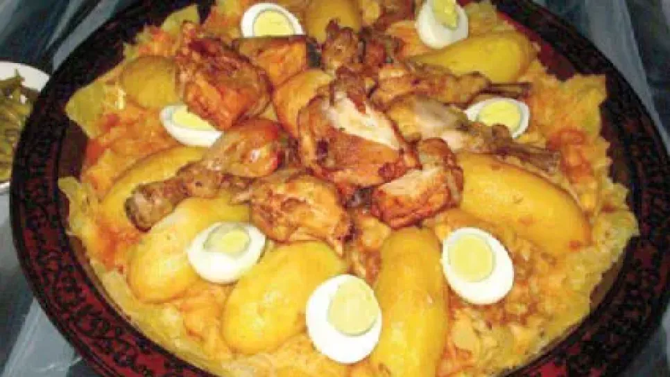 المقاديرأوراق شخشوخةمقادير المرققطع دجاج، ثوم، ملح، طماطم، فلفل حار وحلو، بطاطا، قرعة، حمص منقوع، بصل، زيت، كمون، وراس الحانوت. التحضيرنقلي الجاج مع البصل، نضيف له التوابل والملح والطماطم والفلفل الحار والحلو ، نتركه مدة يقلى على النار ثم نمرّق ونضيف بقية الخضر ونتركها تغلي حتى تنضج، نسقي أوراق الشخشوخة بالمرق ونزيّن الطبق بالبيض والدجاج والبطاطا نحمّرهم للتزيين.