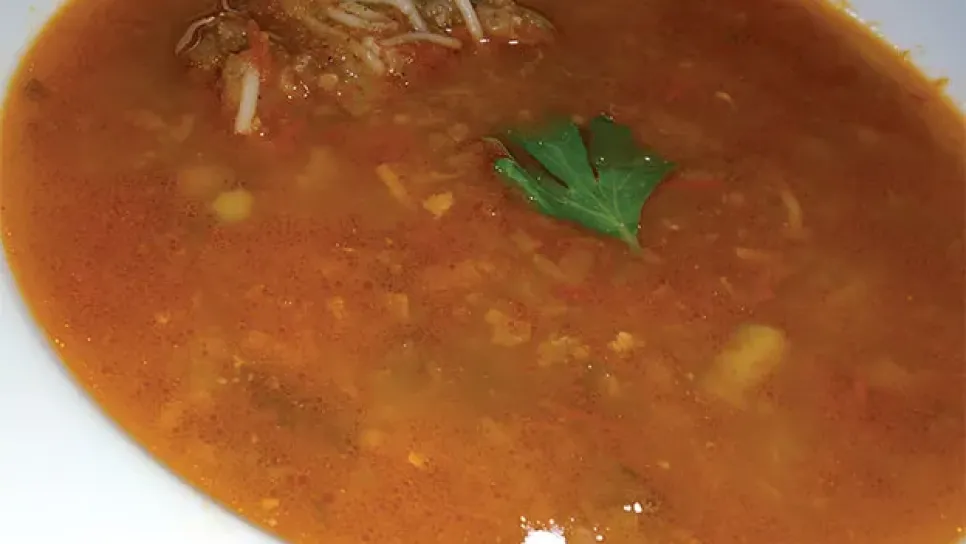 المقادير:لحم مقطع مربعاتفص ثومبصلةكوسة ملعقة كبيرة زيتكزبرةحمص ملح، بهارات(فلفل أحمر، قرفة، قصبر)حشيشة مقطفة2 حبات طماطم2 ملعقة كبيرة معجون طماطمملعقة كبيرة من فلفل أحمر حلو مهروسالتحضير:نضع في طنجرة الزيت، اللحم، فص ثوم مبشورة، بصلة مبشورة، 1 كوسة مقطعة، كزبرة مقطعة صغيرة، حمص وملح، وبهارات، 2 حبات طماطم مبشورة، 1 ملعقة كبيرة معجون طماطم.نحمس ونخلط الكل لمدة 5 دقائق، ثم نضع الماء، ونراقب كمية الماء إذا جف، نضيف الماء، ولما تنضج الكوسة ننزعها ونهرسها بشوكة ونرجعها للقدر. ولما ينضج اللحم نضيف ملعقة كبيرة معجون طماطم ونحركها، ونضيف “الشعيرية” وننقص النار. وبعد 5 دقائق نطفئ...