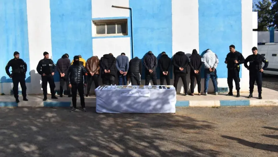 تمكنت مصالح أمن دائرة بني سليمان بالمدية من وضع حد لنشاط شبكة اجرامية متكونة من 13مشتبه فيه اغلبهم مسبوقين قضائيا، متورطون في حيازة والمتاجرة في المؤثرات العقلية. بغرض النقل والتخزين في اطار جماعة اجرامية منظمة، العملية جاءت استغلالا لمعلومات امنية مفاداها تواجد اشخاص مسبوقين قضائيا يقومون بترويج المؤثرات العقلية بين احياء مدينة بني سليمان، ليتم فور مباشرة عملية البحث والتحري بالتنسيق الدائم والمستمر مع نيابة محكمة بني سليمان، اسفرت عن تحديد هوية بعض المتورطين وبعد وضع خطة امنية محكمة، تم مداهمة اماكن تواجدهم من طرف قوات الشرطة والتي اسفرت عن توقيفهم وتحويلهم الى مقر ام...