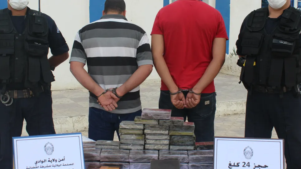 أطاحت اليوم عناصر فرقة البحث والتدخل بالمصلحة الولائية للشرطة القضائية بأمن ولاية الوادي بمروجين اثنين للمخدرات ينشطان في مجال تصدير واستيراد المخدرات ضمن مجموعة إجرامية منظمة. وأوضح مصدر مسؤول من الشرطة لـ"الخبر" بأنه تم العثور بحوزة المتورطين على كمية من الكيف المعالج تزن 24 كلغ معدّة للبيع والترويج في شكل صفائح ذات 250 غرام مخبأة بإحكام في بيت أحدهم. وجاءت عملية القبض على هذين الشخصين، وهما في العقدين الثالث والرابع من العمر وينحدران من ولايات مجاورة ومسبوقين قضائيا على إثر معلومات حصلت عليها فرقة الشرطة تفيد برصد نشاط مشبوهين في بيع وترويج المخدرات بالوادي حيث مكنت عملية تمديد الاختصاص م...