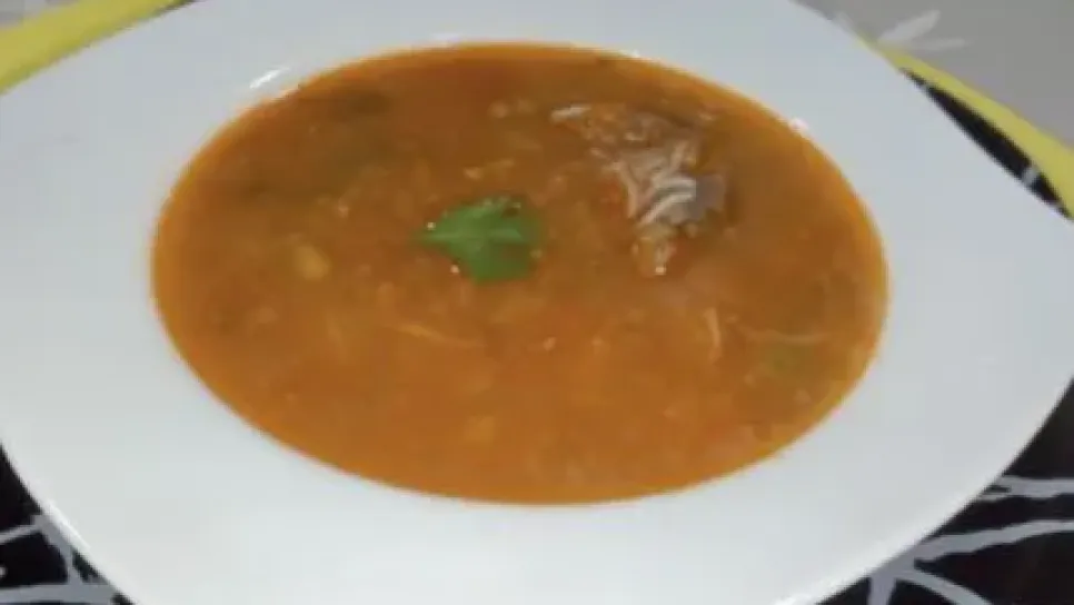المقادير:لحم خروف، حبة بصل، 2 جزر، قرعة، بطاطا، طماطم، ملعقة فلفل احمر مرحي،  حبات ثوم، حمص، كرافس، كزبرة، الشعيرية، ملح، فلفل أسود، فلفل أحمر، قرفة.التحضير:  نضع اللحم في قدر، ونقطع كل الخضر والتوابل ونقليهم، نقطّع الكزبرة والكرافس ونمرّقهم بالماء الساخن، بعدما ينضج اللحم ننزعه من القدر، ونرحي كل الخضر، ونرجعها للقدر ونضع حمص ناضج وبعدها نضع الشعيرية ونتركها تغلي خمس دقائق ونطفئ عليها ونقطع من فوق الكزبرة.