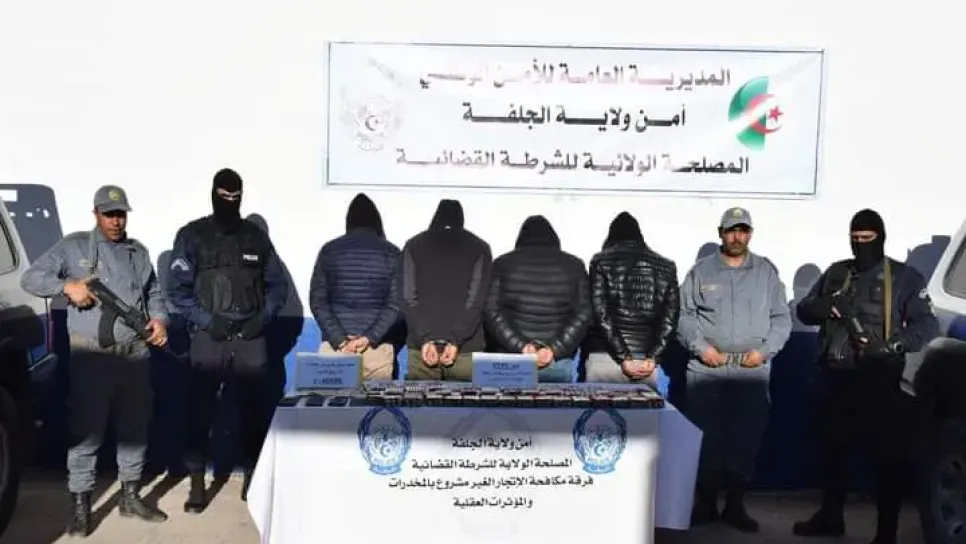 تمكنت المصلحة الولائية للشرطة القضائية بأمن ولاية الجلفة ممثلة في فرقة مكافحة الاتجار غير المشروع للمخدرات بالتنسيق مع الفرقة الجهوية للجمارك لمكافحة التهريب بالأغواط ، في عملية نوعية من وضع حد لنشاط شبكة إجرامية تتكون من 04 أشخاص مشتبه فيهم في العقدين الثاني و الثالث من أعمارهم، مع ضبط وحجز 9255 كبسولة من المؤثرات العقلية، حجز مبلغ مالي قدره (60500 دج) من عائدات المتاجرة بالمنوعات، هواتف نقالة مستخدمة في عملية التواصل بين أفراد الشبكة الإجرامية، الكمية المحجوزة من المؤثرات العقلية كانت مموهة بإحكام داخل مركبة من مركبتين تم حجزهما خلال العملية الأمنية. المشتبه فيهم تم تقديمهم أمام الجهات القض...