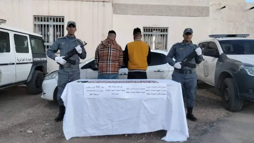 تمكن أعوان كل من الفرقة المتنقلة للجمارك و الفرقة المتعددة المهام للجمارك بعين وسارة التابعتين لمصالح مفتشية الأقسام للجمارك بالجلفة، من حجز 543 قرصا مهلوسا. كما تم حجز سيارة سياحية استعملت في التهريب وتوقيف شخصين وإحالتهما أمام الجهات القضائية المختصة.