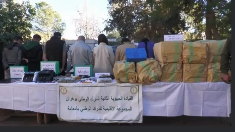 وأوضح المصدر أنه في "إطار محاربة الجريمة المنظمة العابرة للحدود وعلى إثر معلومات واردة إلى الفرقة الإقليمية للدرك الوطني بالقصدير قام أفراد الفرقة مدعمين بأفراد المفرزة الخاصة للتدخل للدرك الوطني بوضع خطة محكمة، أسفرت عن “توقيف 9 أشخاص تتراوح أعمارهم بين 24و60 سنة، من بينهم شخص مبحوث عنه دوليا وشخص آخر في حالة فرار".