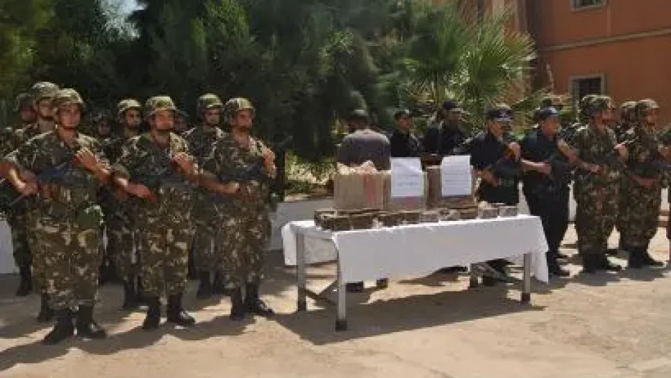 ضبطت مفرزة مشتركة للجيش الوطني الشعبي، أمس الأربعاء، كمية ضخمة من الكيف المعالج تُقدر بأربعة قناطير، إثر دورية تفتيش بمنطقة أم العشار بتندوف، حسبما أورده اليوم الخميس بيان لوزارة الدفاع الوطني. وفي سياق متصل، أوقفت مفرزة للجيش الوطني الشعبي بالتنسيق مع مصالح الجمارك، شخصا على متن شاحنة محملة بـ 50000 علبة سجائر بحاسي مسعود، ولاية ورڨلة، في حين ضبط عناصر الدرك الوطني 17 كيلوغراما و900 غرام من الكيف المعالج بتلمسان. من جهة أخرى، أوقف عناصر الدرك الوطني بجانت، خمسة أشخاص وضبطوا خمس شاحنات و 47 كيسا من خليط خام الذهب والحجارة.