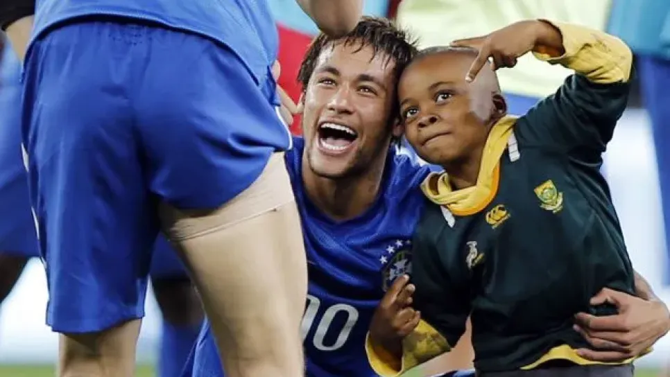 اقتحم طفل جنوب أفريقي أرض الملعب خلال مباراة ودية جمعت منتخبي البرازيل وجنوب أفريقيا.وحاول عناصر الأمن ايقاف الطفل وإخراجه من الملعب، حين ناداهم اللاعب البرازيلي نيمار طالباً منهم السماح بمرافقته.وما لبث أن حمل نيمار الطفل البالغ من عمر 10 سنوات متوجهاً نحو  زملائه في المنتخب البرازيلي.وحمل نيمار وزملاؤه الطفل، رفعوه في الهواء ليشاركهم فرحة الفوز على منتخب جنوب افريقيا بخمسة أهداف في مقابل لا شيء.والتقط اللاعب دايفيد لويز صورة تذكارية للطفل مع نيمار.وعلى عكس منتخب بلاده، لم تغب الإبتسامة عن وجه الطفل منذ أن حمله النجم البرازيلي نيمار.