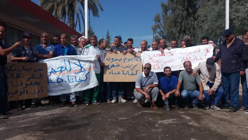 احتج عمال مصنع تكرير السكر "راسيلا " الواقع بسيدي لخضر في ضواحي خميس مليانة بولاية عين الدفلى التابع لمجمع برحال الخاص حيث تجمعوا أمام مدخل المصنع ورفعوا لافتات حملت عبارات التنديد بالظلم والحقرة والتمييز الذي يتعرض له العمال. وخلال تنقلنا إلى المصنع ووسط العمال المحتجين، أكد ممثل الفرع النقابي مغاطرية ابراهيم أنه مر 45 يوما دون أن يتقاضى العمال أجورهم لشهر سبتمبر، مضيفا بأن المصنع الذي يضم 265 عامل، يعمل فقط ب 50 بالمائة من قدراته الإنتاجية، وذلك بسبب سوء التسيير والغياب التام للإدارة والإهمال الذي يطاله. كما اتهم العمال، الإدارة بعدم تطبيق المخطط التنظيمي للشركة المتفق عليه منذ 2008...